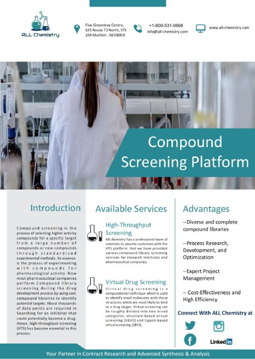 ALL Chemistry has a strong background in custom synthesis, custom compound screening and other related services. We are an integrated service provider with expertise and rich experience in the following areas: